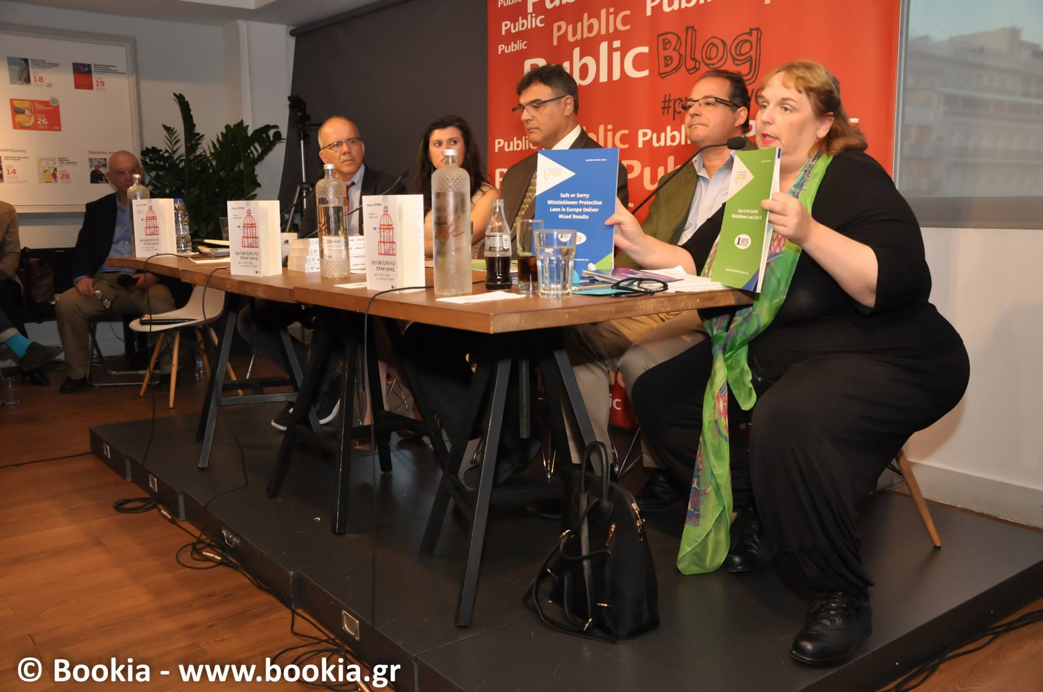 Η συζήτηση πραγματοποιήθηκε στην αίθουσα εκδηλώσεων του Public Συντάγματος για τον θεσμό των μαρτύρων δημοσίου συμφέροντος (whistleblowers), o οποίος στην Ελλάδα, παρά την πρόσφατη νομοθέτησή του, αμφισβητείται έντονα ακόμη και από αυτούς που τον νομοθέτησαν.