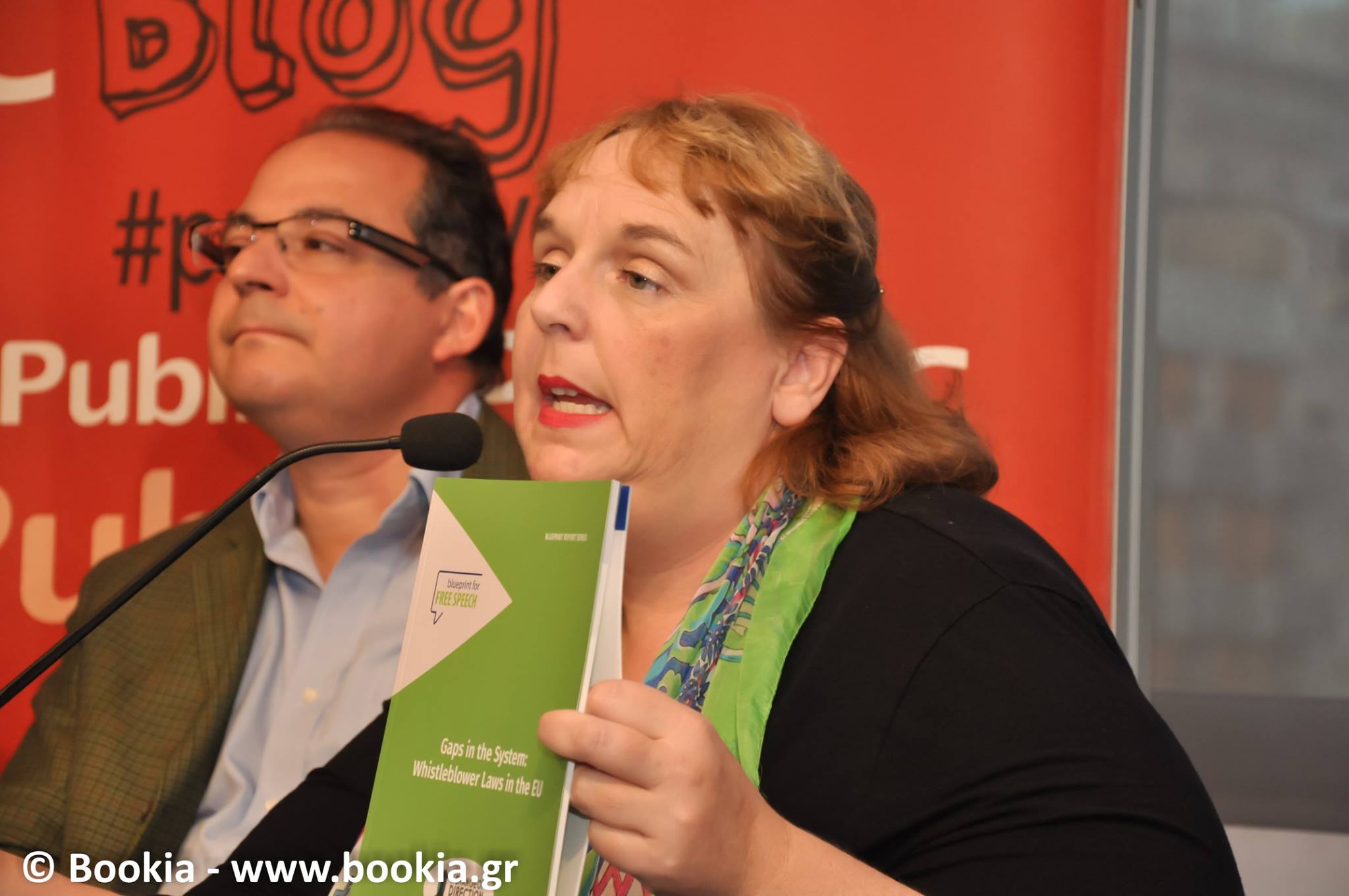 Dr Suelette Dreyfus: Executive Director της ειδικευόμενης σε ζητήματα whistleblowing διεθνούς ΜΚΟ Blueprint for Free Speech & BluePrint Greece, διδάσκουσα σε θέματα πληροφοριακών συστημάτων στο University of Melbourne, διακεκριμένη συγγραφέας σε συναφή θέματα.